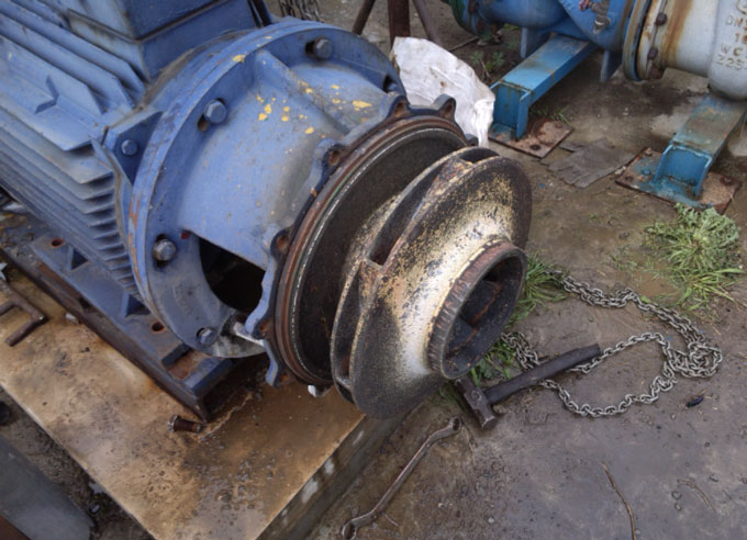 1)在水泵前投入藥物或者水質(zhì)等原因,導(dǎo)致泵殼內(nèi)嚴重腐蝕或者污垢過多。泵殼內(nèi)污垢過多會導(dǎo)致泵殼壁厚增加2毫米左右,會使泵內(nèi)壁形成垢瘤,導(dǎo)致泵體容積縮小、抽水量減少、流道粗糙、增加水頭損失。水力效率和容積效率都會降低。